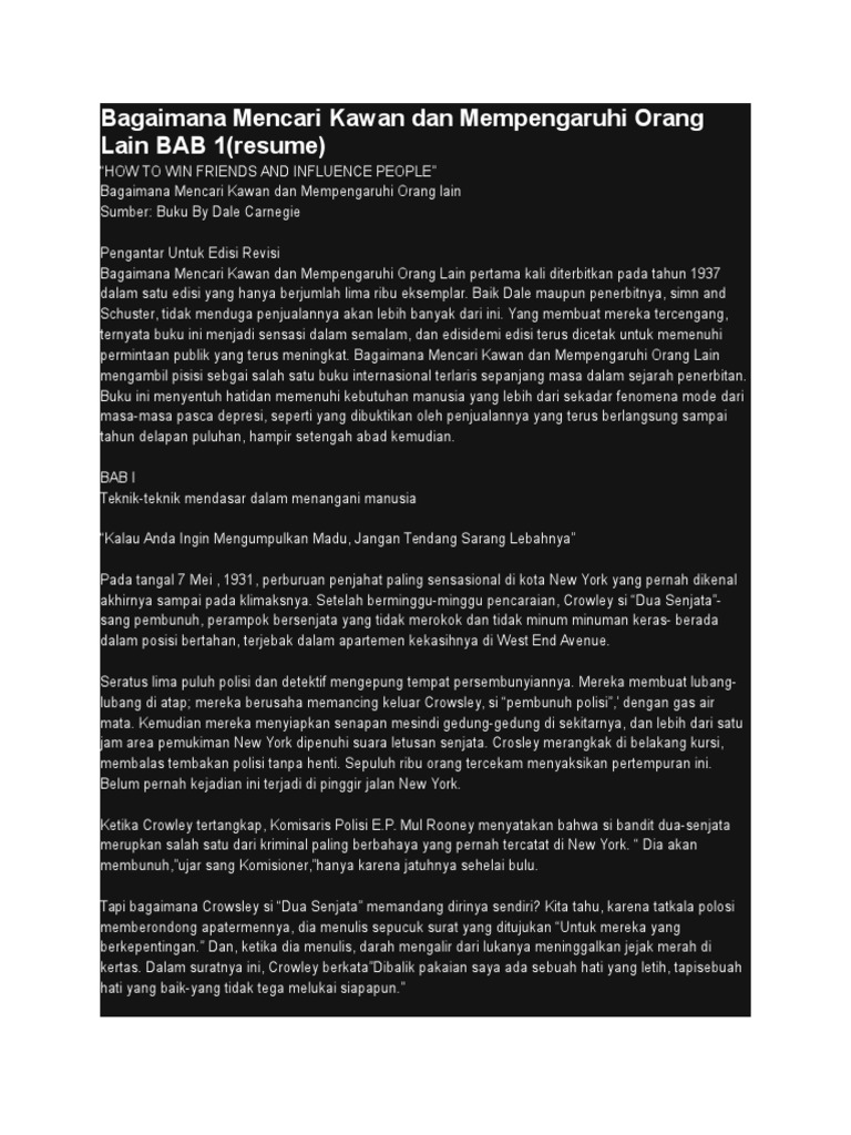 Bangkitkan minat pada diri orang lain. Mempengaruhi orang lain karya dale carnegie, tapi tidak banyak orang yang menjelaskan kepada saya buku itu berisikan apa aja, merka cuma mengatakan bahwa buku itu bagus untuk dibaca dan menjadikan kita bisa memperoleh teman yang lebih banyak. Terjemahannya bagaimana mencari kawan dan mempengaruhi orang lain. How to win friends and influence people bagaimana mencari kawan dan mempengaruhi orang lain sumber: Bag bagaimana mencari k awan wan dan mempengaruh ruhi oran orang lain.